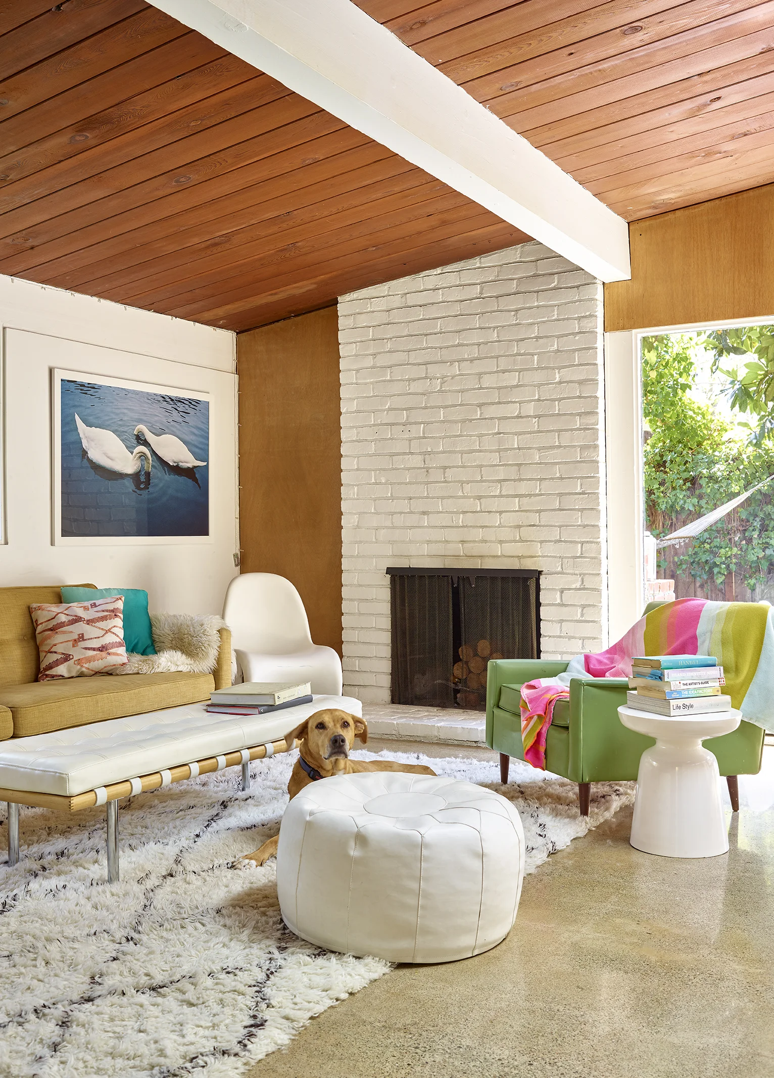 The first floor sliding glass wall is slightly angled to face due south, and opens with no post in the corner, allowing the "public" spaces of the living - dining- kitchen areas to join completely with the covered courtyard, and transition seamlessly to the yard.