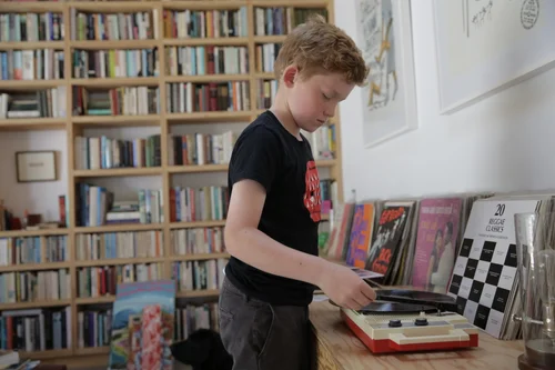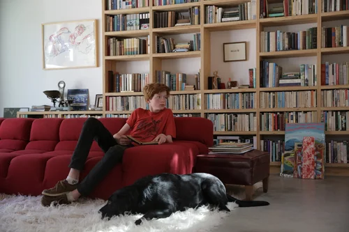 Private spaces are all on the second floor, with the semi-private family room/ mezzanine divding the children's area from the parents' area.